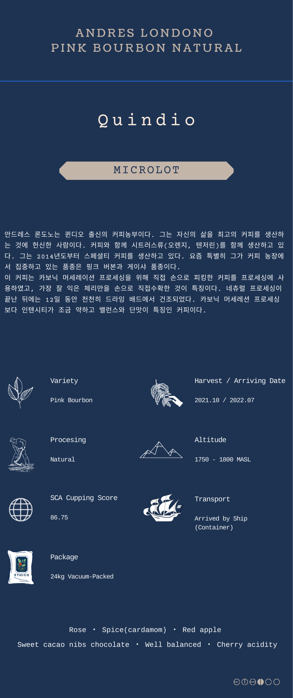 콜롬비아 안드레스 론도노 핑크 버번 내추럴 (Colombia Andres Londono Pink Bourbon Natural)