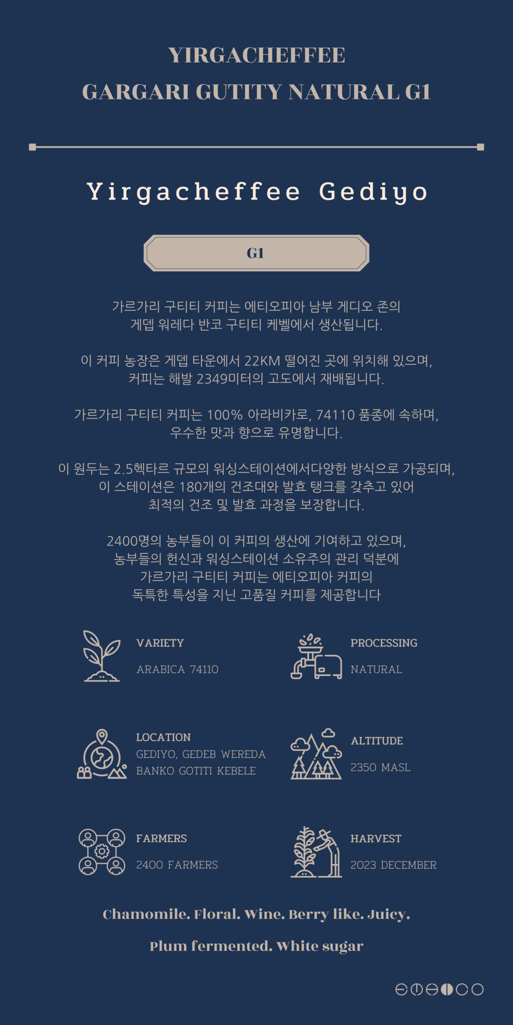 23/24 에티오피아 예가체프 가르가리 구티티 내추럴 G1 (Ethiopia Yirgacheffee Gargari Gutity Natural G1)