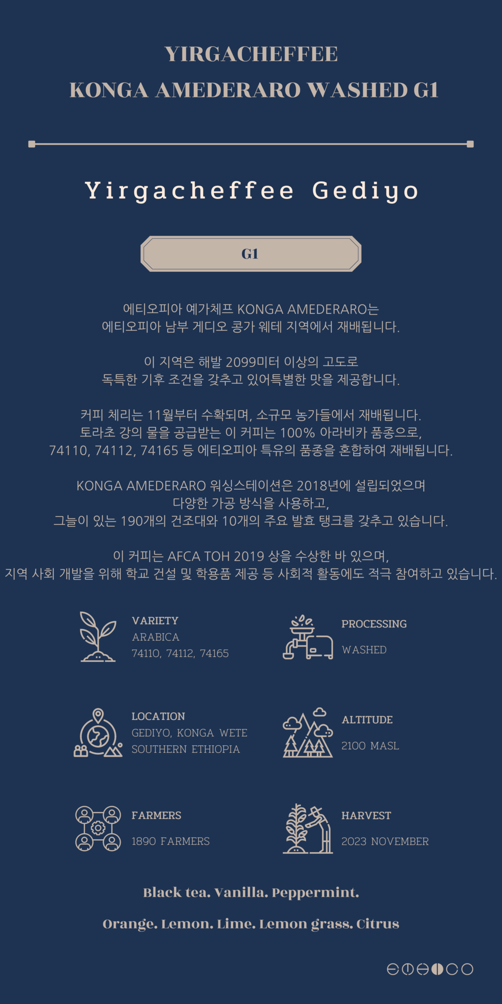 에티오피아 예가체프 콩가 아마데라로 워시드 G1 (Ethiopia Yirgcheffee Washed Konga Amederaro G1)